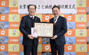 大河原町より、企業版ふるさと納税感謝状をいただきました