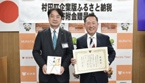 村田町より、企業版ふるさと納税感謝状をいただきました