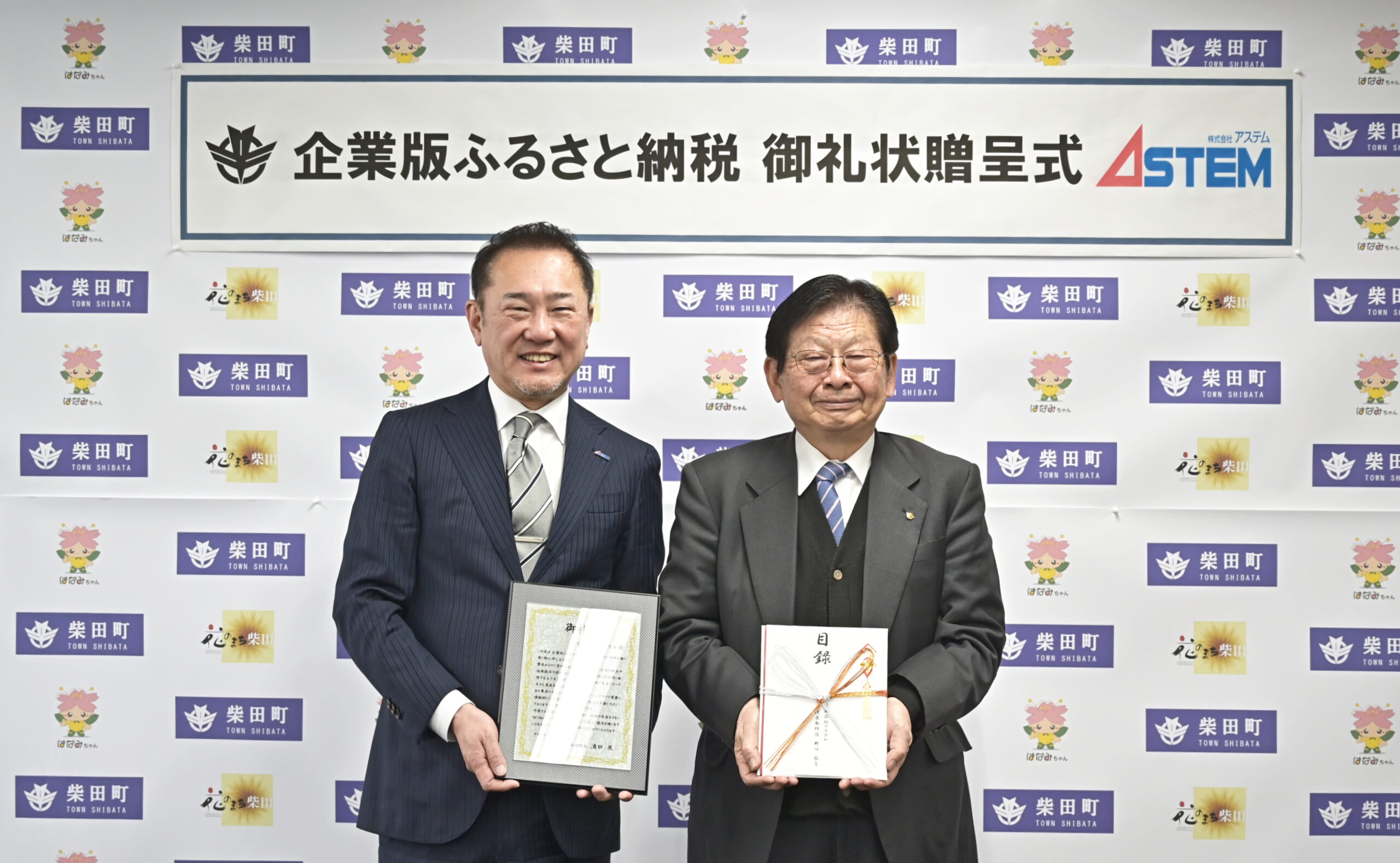 このたび、企業版ふるさと納税による柴田町への寄付に対し、柴田町 滝口茂町長より感謝状を贈呈していただきました。